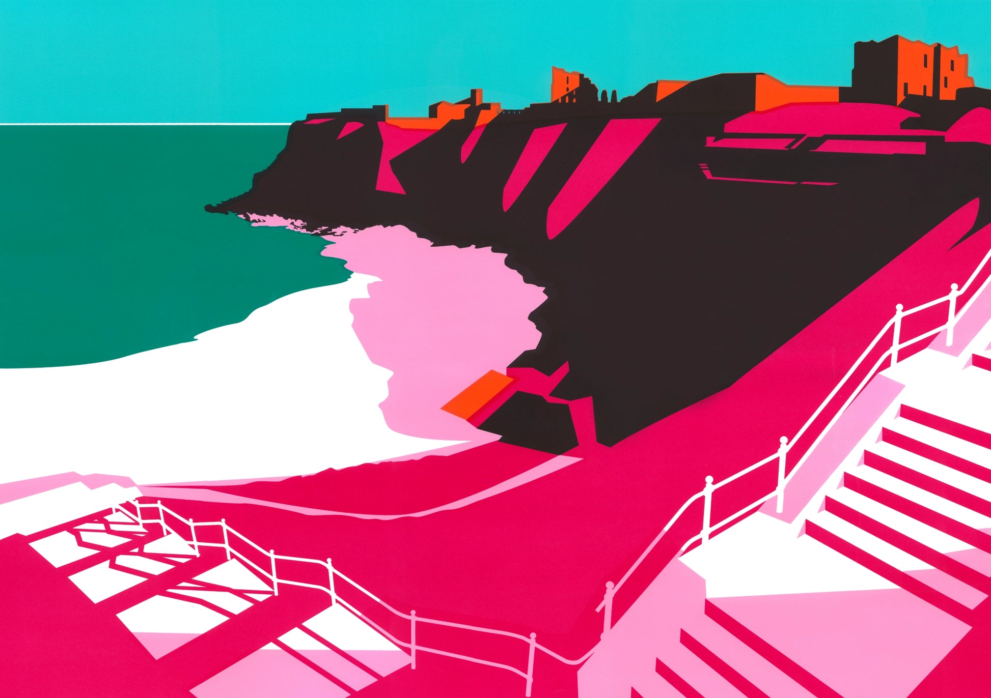 Taken from a six-colour screenprint. The evening sun catches the magnificent ruins of Tynemouth Priory & Castle and the shadows reach deep into King Edward’s Bay.